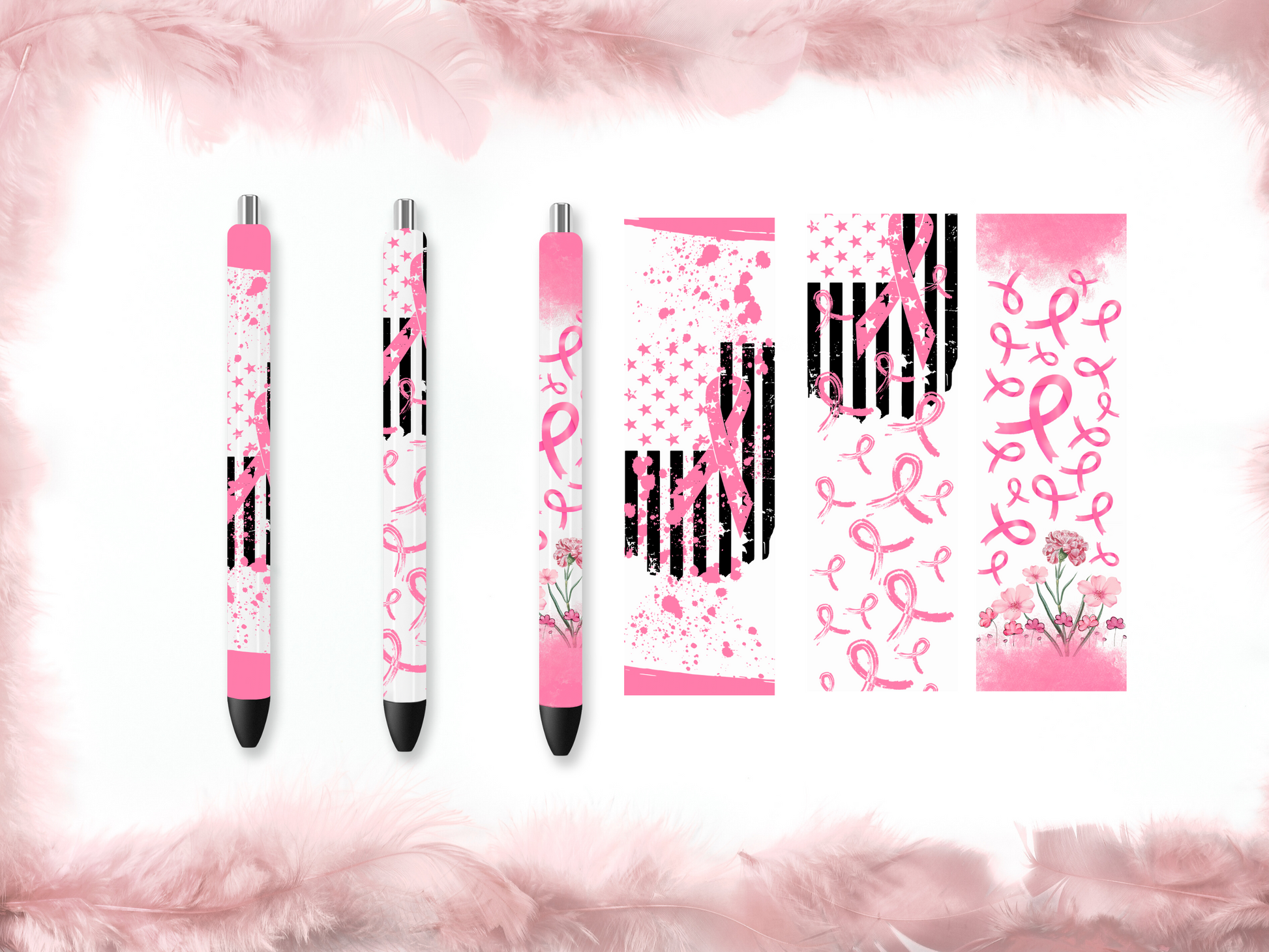 Breast Cancer Awareness Pen Wrap DIY Set – Pink Ribbon Designs (Set of 3)
