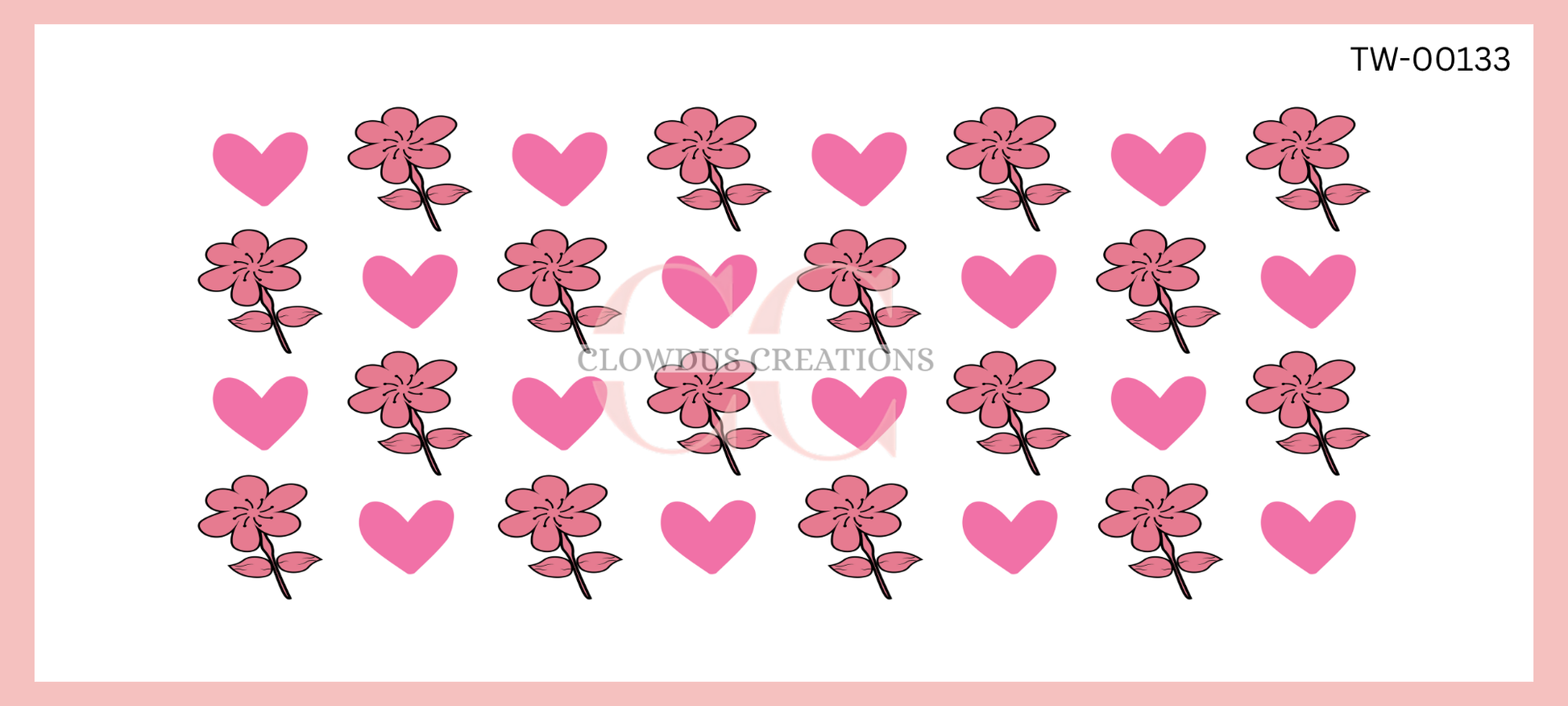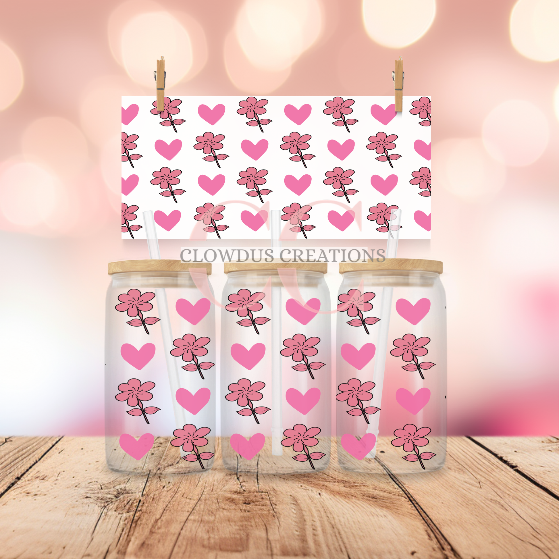 Pink Hearts and Flowers UV DTF Wrap TW-00133